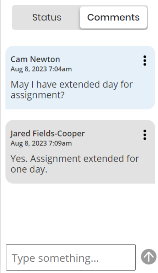 Once you respond to a notebook prompt, you can add a comment or question for your teacher's feedback. You can both use this feature to communicate back and forth in the same comment thread. If you delete a notebook response, your comment thread is retained.
