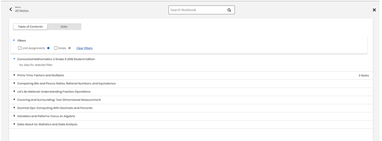 3. Choose the Unit Assignments, Notes, and/or Question options to filter the list of notes.