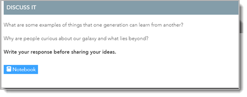 You can use the Notebook feature to add notes to assigned content or to respond to activities with notebook prompts. Once you turn in your completed assignment, your teacher can view your notebook responses within Realize.
