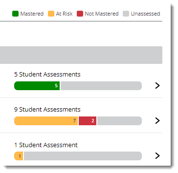 # Student Assessments—Displays a colored bar that graphically represents the number of students with each mastery status.